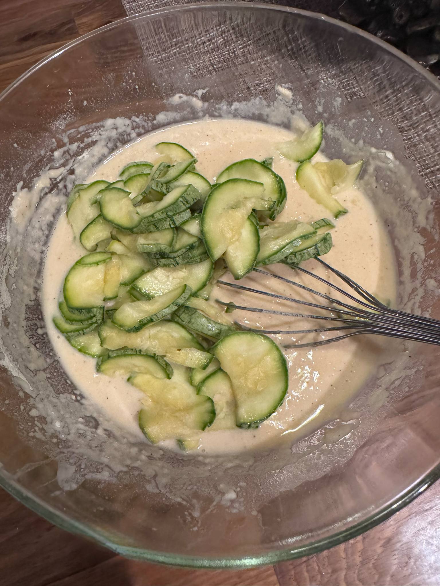Ανακατεύω κ ρίχνω μέσα τα κολοκυθάκια που τα έχω στύψει πολύ καλά .
